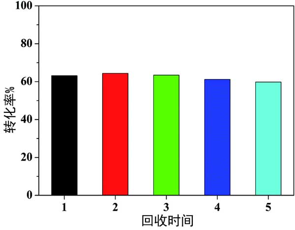 進行回收試驗以研究活性炭催化劑的異質(zhì)性和穩(wěn)定性。第一次催化反應(yīng)完成后,過濾回收活性炭載鉑催化劑(硫酸活化),用蒸餾水洗滌,55℃真空干燥12小時,重新用于第二次催化反應(yīng)。在另外三個運行中實施了相同的操作。同時,在第一次運行后,通過檢測回收的活性炭催化劑和濾液中的鉑量。圖3展示了回收試驗的結(jié)果。觀察到甲基環(huán)己烷的轉(zhuǎn)化率在59.8-64.4%范圍內(nèi)有小幅波動,表明活性炭催化劑的活性在重復(fù)使用4次后幾乎沒有下降,表明活性炭催化劑具有良好的穩(wěn)定性。第一次運行后,反應(yīng)中的鉑浸出量為0.33ppm。當(dāng)鉑催化劑從反應(yīng)體系中過濾出來時,在濾液中很少觀察到催化反應(yīng),這證明了活性炭載體上的鉑作為非均相活性位點。