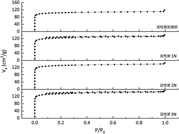 圖1:活性炭處理前后的等溫線曲線。