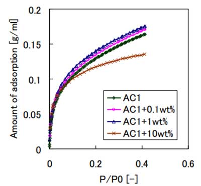 活性炭在0.4的相對(duì)壓力下。 當(dāng)它是1wt%時(shí),正丁烷的吸附量增加了最多是原料碳的1.11倍。 當(dāng)它為10wt%時(shí),正丁烷的吸附量減少比原始碳高出7%。根據(jù)上述結(jié)果,當(dāng)硅酸鈉溶液的條件是0.1和1wt%分別可以說(shuō),正丁烷對(duì)二氧化硅浸漬碳的吸附性能較大比法碳。