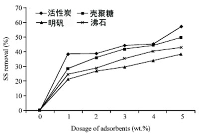 圖2:懸浮固體去除百分比與活性炭劑量的關系。