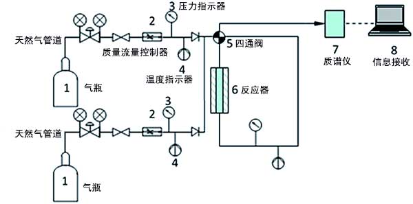 在我們之前的工作中開(kāi)發(fā)了吸附裝置來(lái)測(cè)量氣體穿透曲線(xiàn)(圖1)。它由三個(gè)主要部分組成:準(zhǔn)備部分、吸附段和分析部分。在氣體制備部分中,吹掃氣體是高純度Ar氣體(99.999%),其用于在引入烴氣體之前通過(guò)惰性氣體管線(xiàn)和反應(yīng)器吹掃系統(tǒng)。吸附部分使用丙烷或乙烷在氦氣或人造氣體混合物,其通過(guò)燃料氣體管線(xiàn)和反應(yīng)器。這兩條線(xiàn)都碰到了一個(gè)四端口交叉閥。整個(gè)裝置等溫(~26℃)。閥門(mén)位置,氣體流量,壓力和溫度完全自動(dòng)化,并由內(nèi)部程序控制。通過(guò)質(zhì)譜儀分析和量化來(lái)自反應(yīng)器出口的氣體。