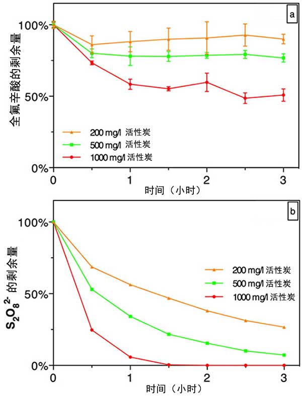 圖1。在存在和不存在活性炭的情況下硫酸鹽處理后的全氟辛酸。