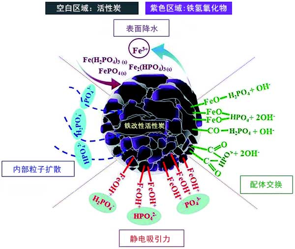 圖4:磷酸鹽吸附到鐵改性活性炭上的可能機(jī)制。