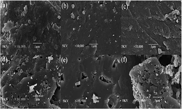 從表面形態(tài)分析不同煤和活性炭的SEM圖像如圖2所示。它表明三種活性炭的表面相對光滑,沒有任何毛孔,除了偶爾的裂縫。在活化后,三個活性炭的外表面都顯示出不規(guī)則的孔;钚蕴康谋砻嫦鄬Υ植诓⑶冶憩F(xiàn)出更多的孔。而具有低灰分和揮發(fā)性物質(zhì)含量的炭2顯示出相當(dāng)光滑的表面?赡苁窃跉饣^程中形成的金屬鉀可以擴(kuò)散到碳基質(zhì)的內(nèi)部結(jié)構(gòu)中,從而擴(kuò)大現(xiàn)有的孔隙并產(chǎn)生新的孔隙。