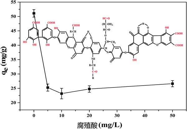圖3:腐殖酸對使用活性炭吸附四溴雙酚A的影響。