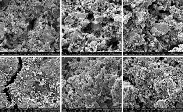 可以通過掃描電子顯微鏡,通過分析每個(gè)測(cè)試開始和結(jié)束時(shí)材料的圖像來進(jìn)一步研究此方面。注意孔徑。測(cè)試后(圖4的底部)不再存在新鮮材料大量孔隙的大部分(圖4的頂部)。在測(cè)試結(jié)束時(shí),萘碳化產(chǎn)生的碳沉積物主要以小晶粒的形式存在于活性炭表面,通常集中在表面的特定區(qū)域周圍,可能對(duì)應(yīng)于活性部位。在煤或椰子殼上的活性炭上已經(jīng)觀察到類似的碳粒和細(xì)絲,并且在這些情況下,它們的形成與鐵和堿物種的催化活性有關(guān)。在活性炭球團(tuán)的SEM圖像中,也可以區(qū)分深裂縫,這可能是熱應(yīng)力的結(jié)果。